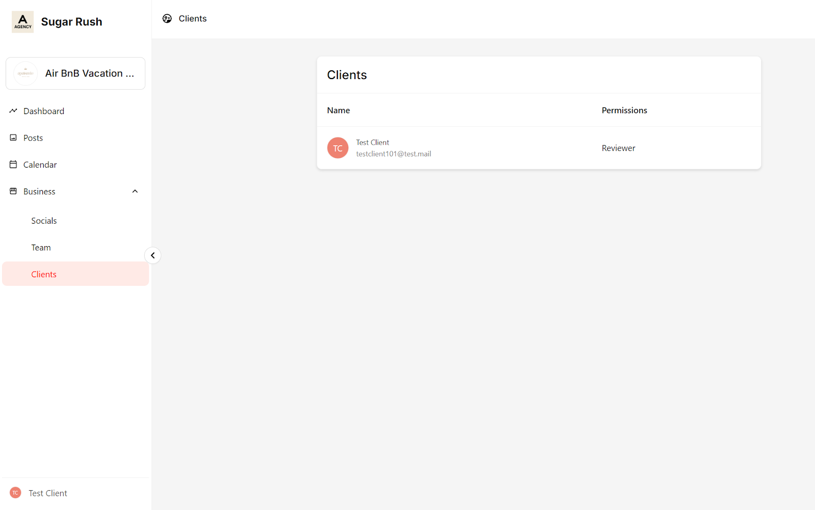 - All invited clients are listed here. Each client can view the full list of clients associated with the business for transparency and collaboration.
