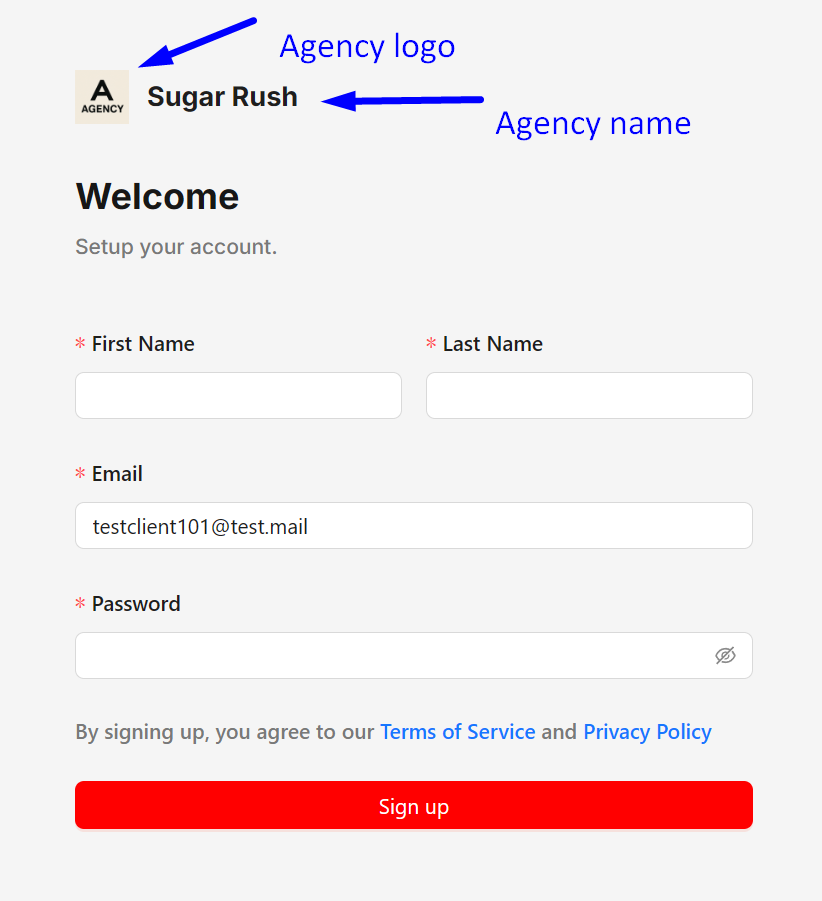 Sign up - The agency must first invite you to the business profile. Once invited, they will provide you with the sign-up link.